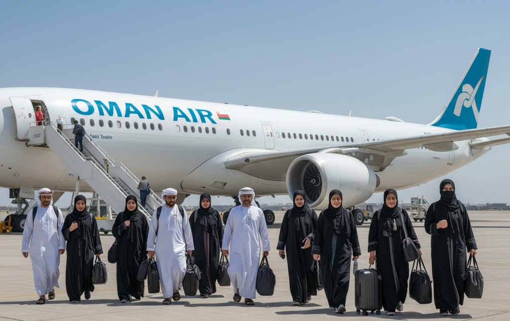 الحركة إلى مطار مسقط والاستقبال في قاعة المطار من قبل إداري الحملة. الوصول المتوقع مساءً إلى فندق نوفيتل ذاخر بمكة المكرمة.